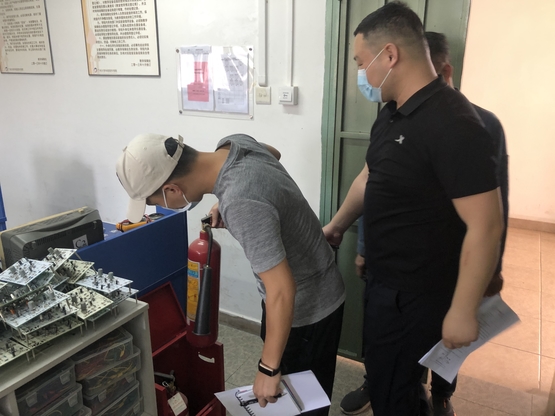 检查组成员经培训后开展具体检查工作,检查组根据《广州软件学院实验室安全检查项目表》的要求,重点检查了实验室环境、用电安全、消防安全、个人防护等方面落实情况。
